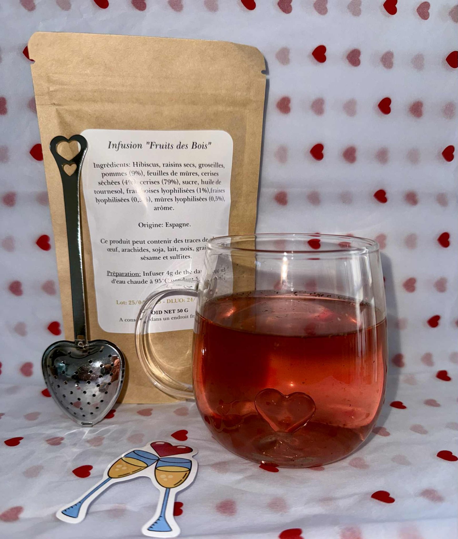 Parce qu’il va au-delà du simple cadeau. Il réunit une infusion gourmande aux fruits des bois aux bienfaits naturels, une tasse “Amour” au détail unique — un cœur intégré au fond qui se révèle à chaque gorgée — et un infuseur en acier inoxydable, nomade et réutilisable, à emporter partout.