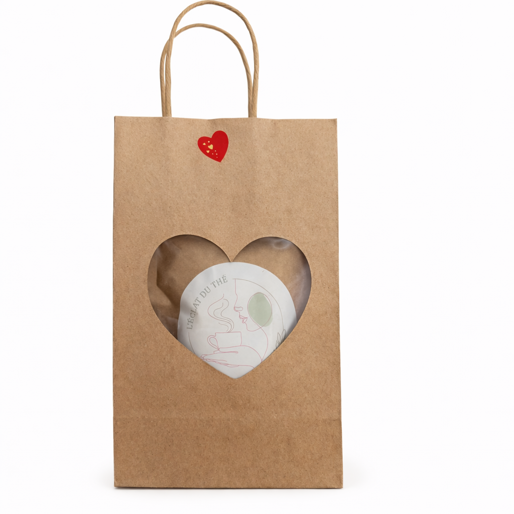 Présenté dans un adorable sac cœur, le coffret est soigneusement préparé pour faire son effet dès l’ouverture.