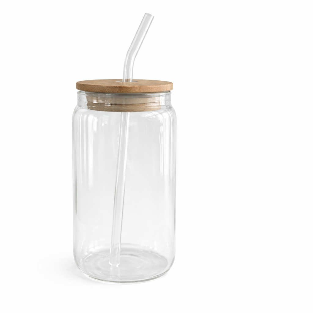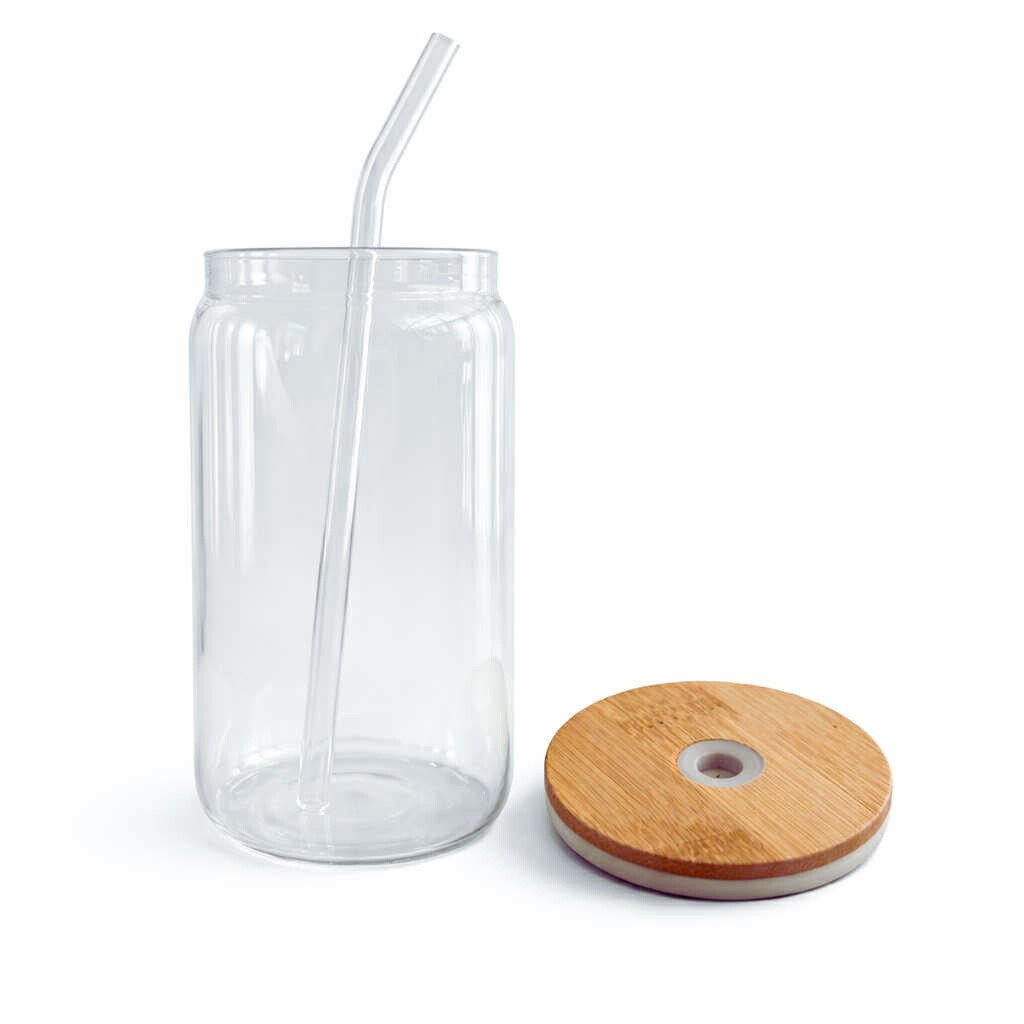 Tasse en Verre 400ml – avec Couvercle en Bois & Paille en Verre.
